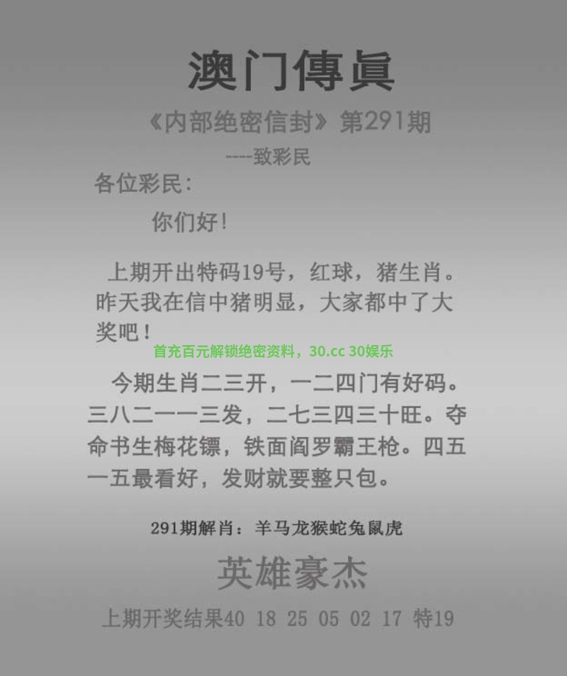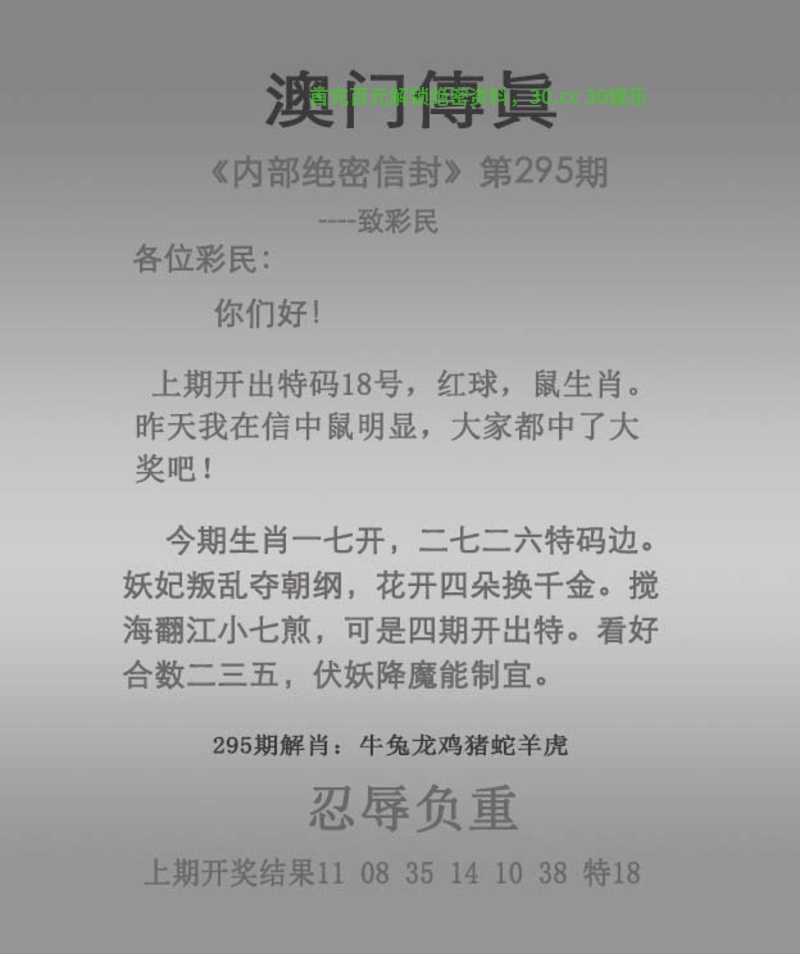 澳门传真295期
