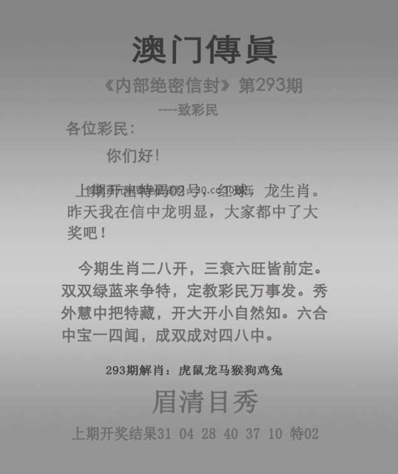 293期绝杀三肖『虎狗马』开羊47中
